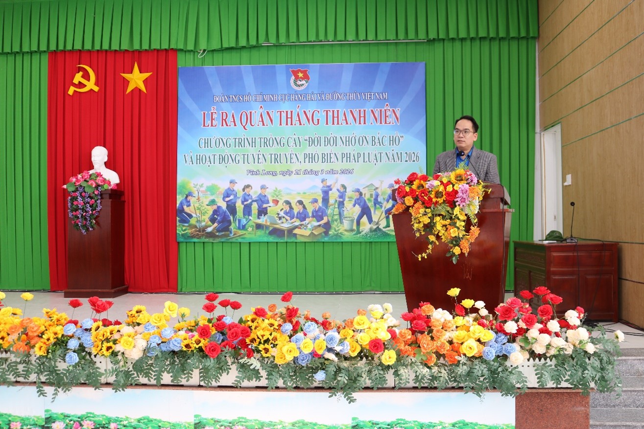 Hưởng ứng phong trào “Tết trồng cây – Đời đời nhớ ơn Bác Hồ” Xuân Bính Ngọ năm 2026, Chi đoàn Cảng vụ Hàng hải Cần Thơ đã phối hợp với Đoàn Thanh niên Cục Hàng hải và Đường thủy Việt Nam, cùng các chi đoàn khu vực phía Nam tổ chức Chương trình trồng cây kết hợp tuyên truyền, phổ biến pháp luật tại xã Long Vĩnh, tỉnh Vĩnh Long.